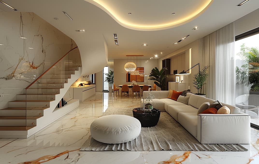 Pillar is a luxury to the resilience, adaptability, Spacious modern villa living room with centrally placed swimming pool blending indooroutdoor.