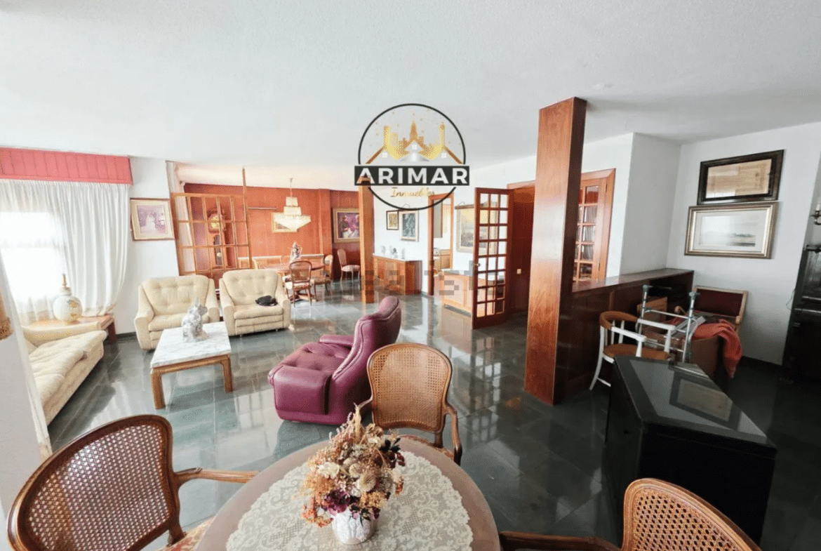 Gran ático en venta en la Avenida Rey Don Jaime de Castellón de la Plana, todo exterior y muy luminoso, tiene 242 m2 construidos, distribuidos en 4 habitaciones amplias todas con armarios empotrados, 2 baños(uno en la habitación principal), amplia cocina con zona de lavadero y despensa, un gran salón comedor con acceso al balcón, desde el comedor y el balcón tiene unas magnificas vistas hacia el mar, el estado del inmueble esta bien conservado y tiene muchas posibilidades a la hora de una reforma, tiene 2 puertas de seguridad de entrada, no tiene ningún vecino en el mismo rellano y cuenta con la seguridad de unas rejas al subir por las escaleras que no se puede acceder al rellano si no es el propietario del piso, el precio también incluye un trastero en la azotea, una plaza de garaje en el mismo edificio con la peculiaridad que esa plaza de garaje se comparte con otro vecino por periodos de 6 meses cada uno, el edificio tiene 2 ascensores, esta cerca de todos los servicios, comercios, restaurantes y transporte publico. El precio anunciado no incluye los gastos de formalización de compraventa ( impuestos, notaria, registro y los honorarios de intermediación inmobiliaria para la parte compradora del 2% + iva sobre el precio final de venta.